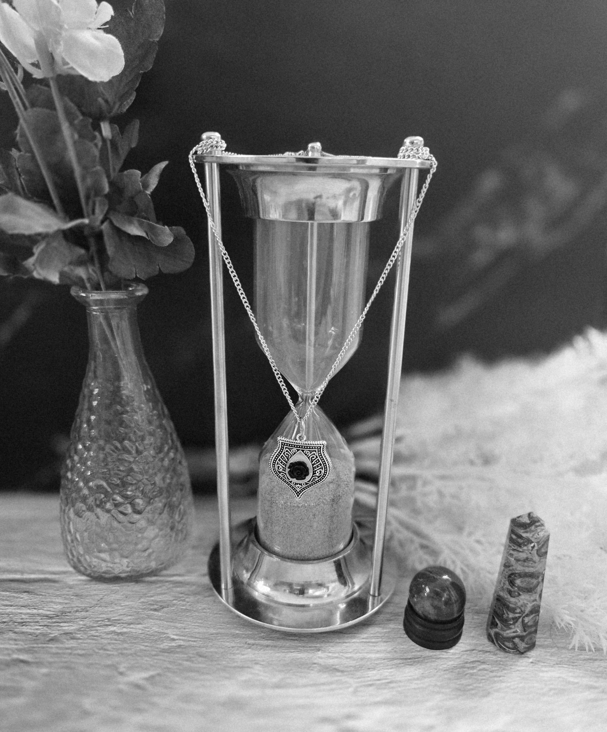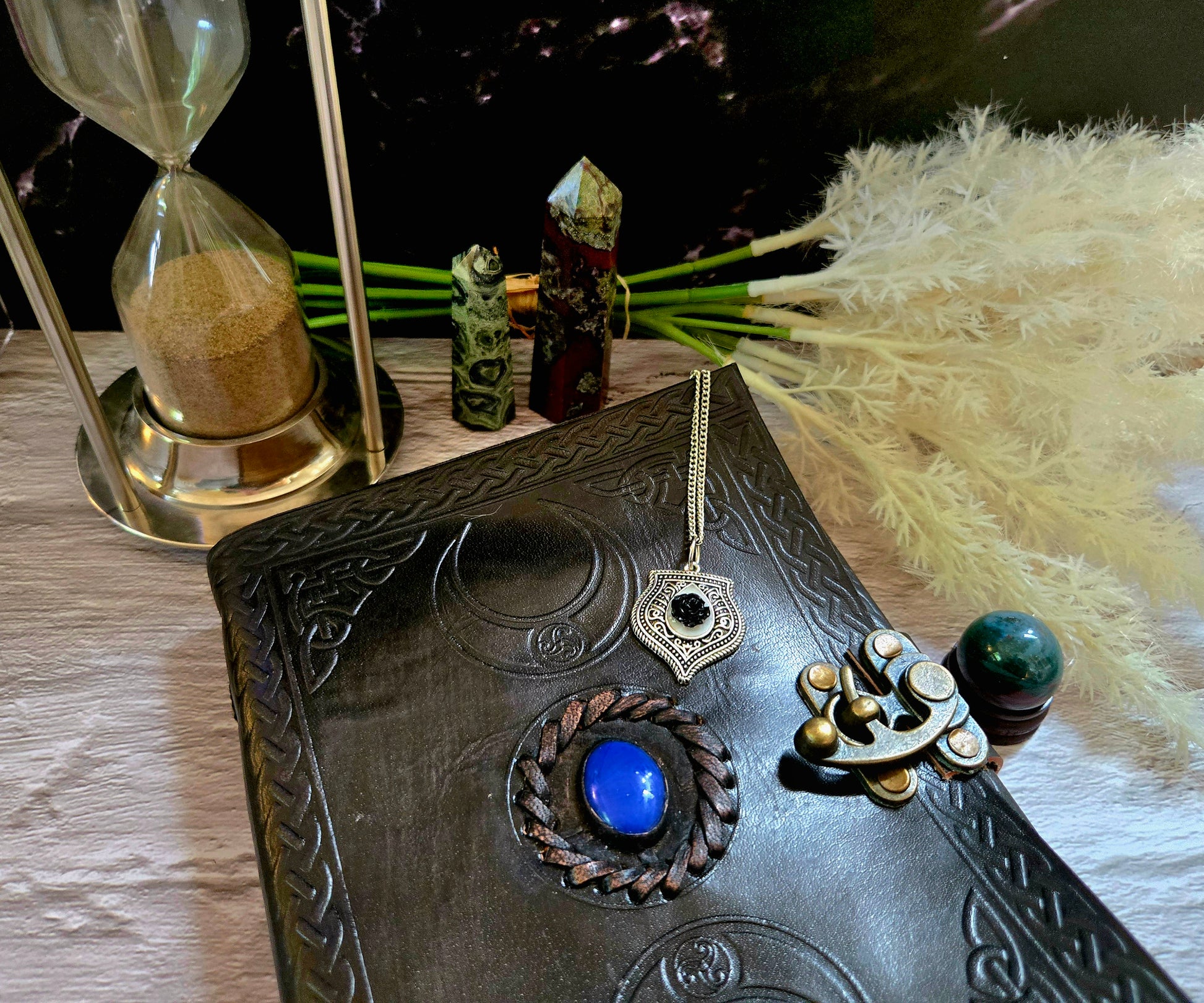 Suspended from a delicate silver-tone chain, this piece is ideal for those who appreciate unique, handcrafted jewelry with an air of sophistication and elegance.