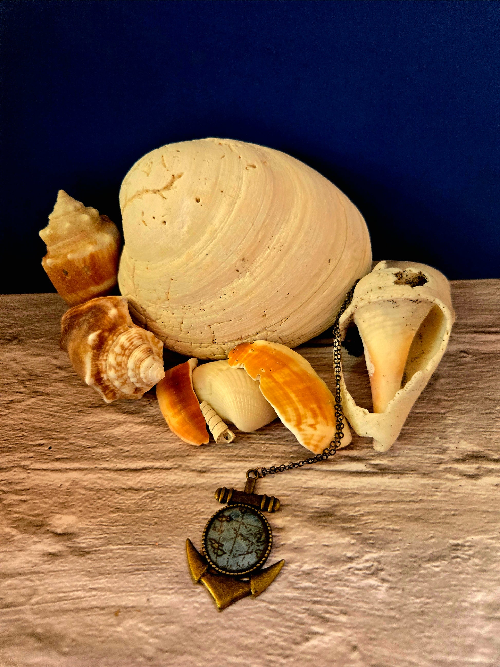 Nautical Anchor Necklace: Vintage Map Pendant, Coastal Jewelry
