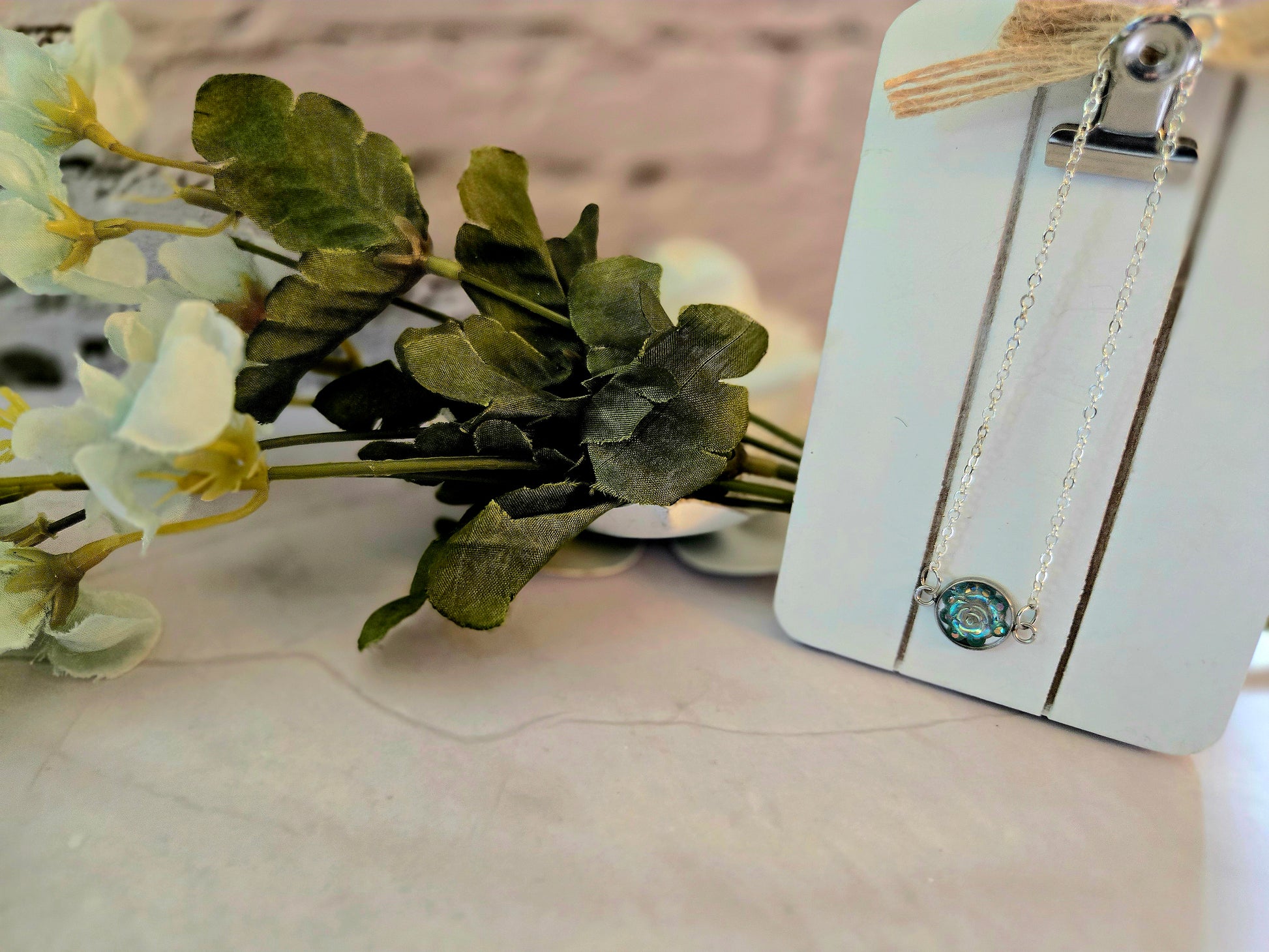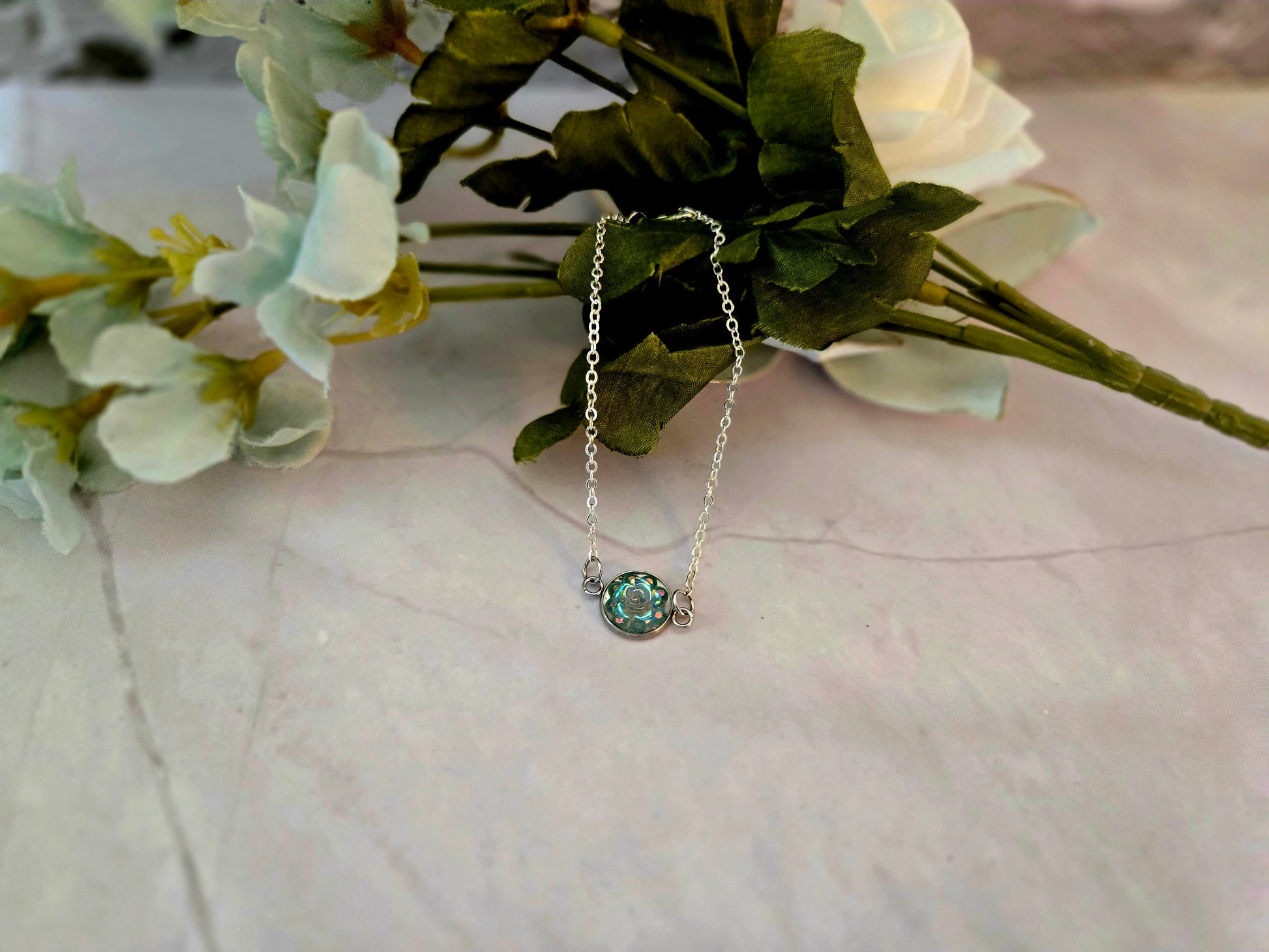 Delicate Silver Chain Bracelet with Iridescent Glass Bead