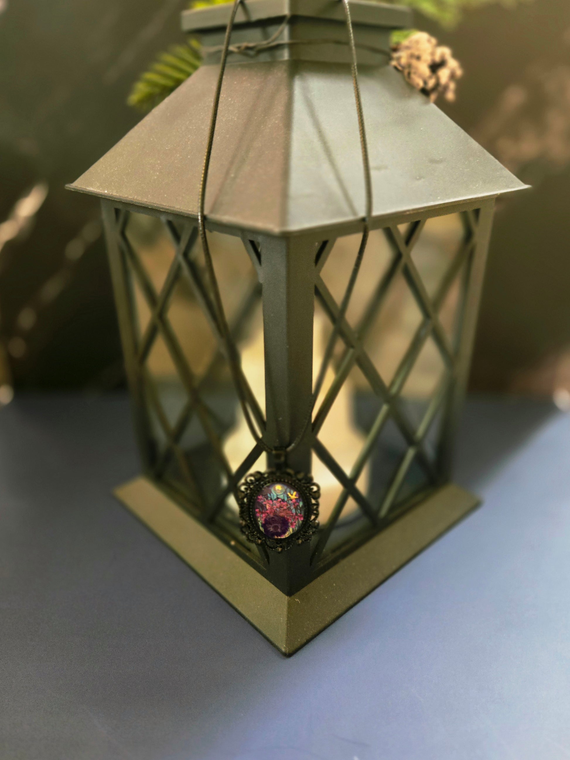 Set in an elegant vintage-inspired silver frame, the pendant showcases a stunning nebula-like image under a glass dome, creating the illusion of a miniature universe. The sleek silver chain completes the look, making this the perfect statement piece for stargazers, dreamers, and lovers of all things cosmic.