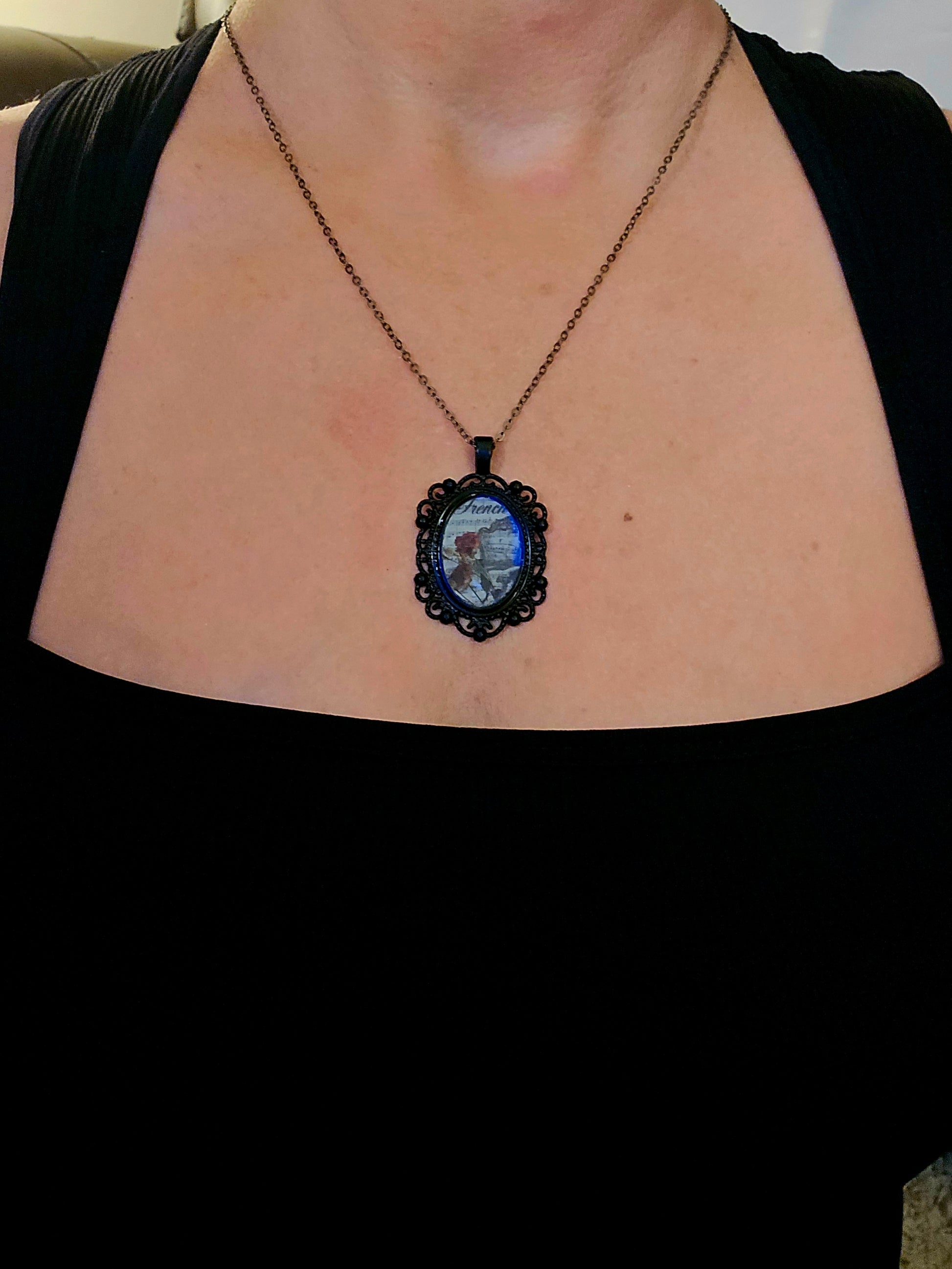 Wear this pendant like a page torn from a forgotten love letter — an heirloom from the shadows.