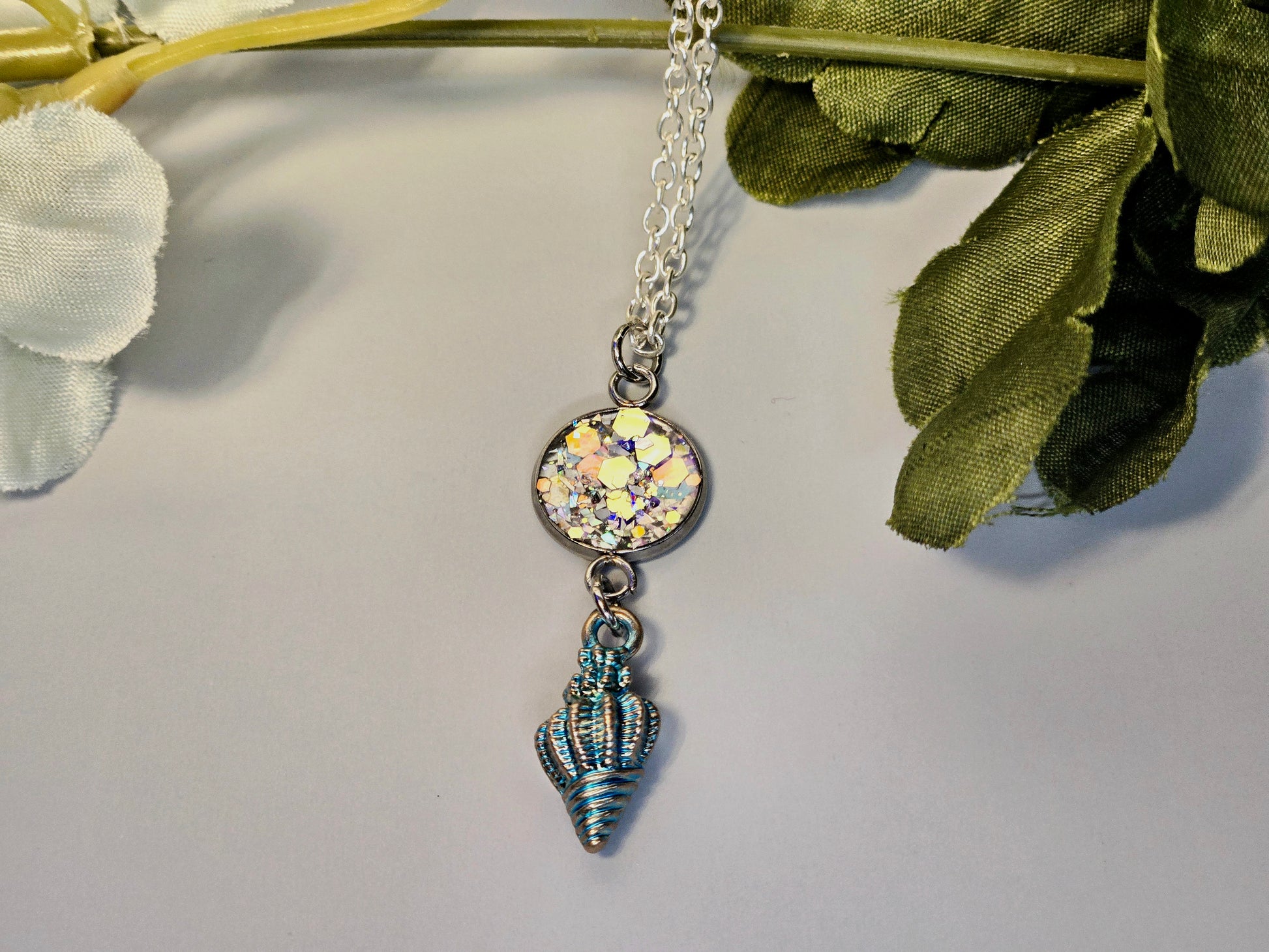 Iridescent Ocean Pendant Necklace with Seashell Charm – Handmade Beach-Inspired Jewelry