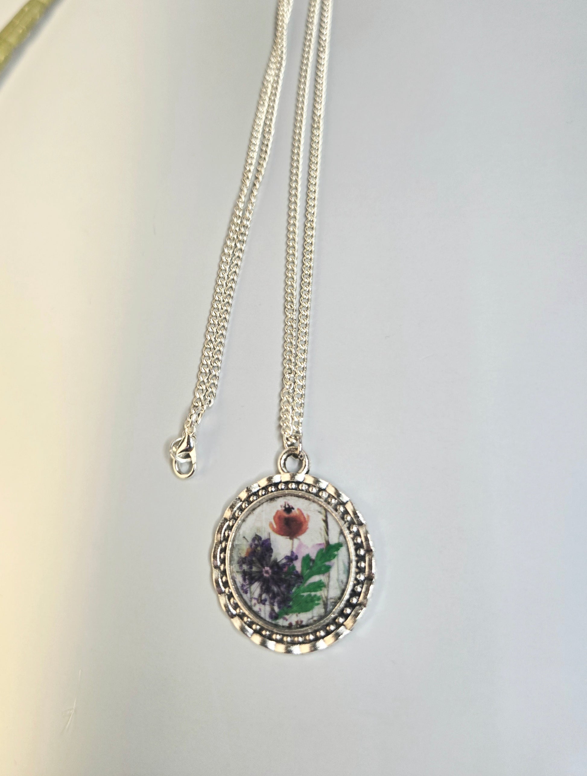 Wildflower Pendant Necklace: Real Dried Blooms, Silver Frame