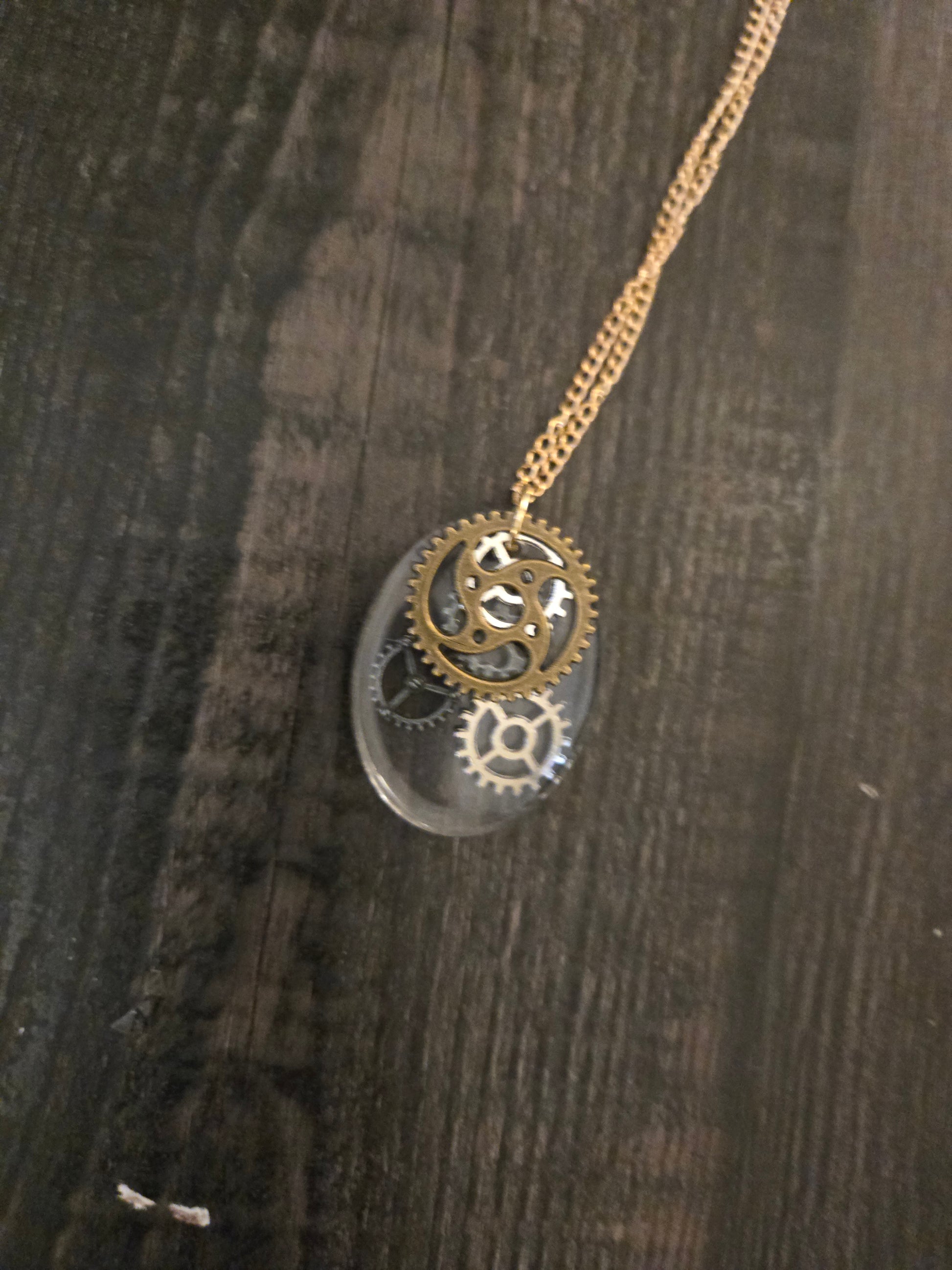 Steampunk Gear Necklace: Gold & Silver Resin Pendant