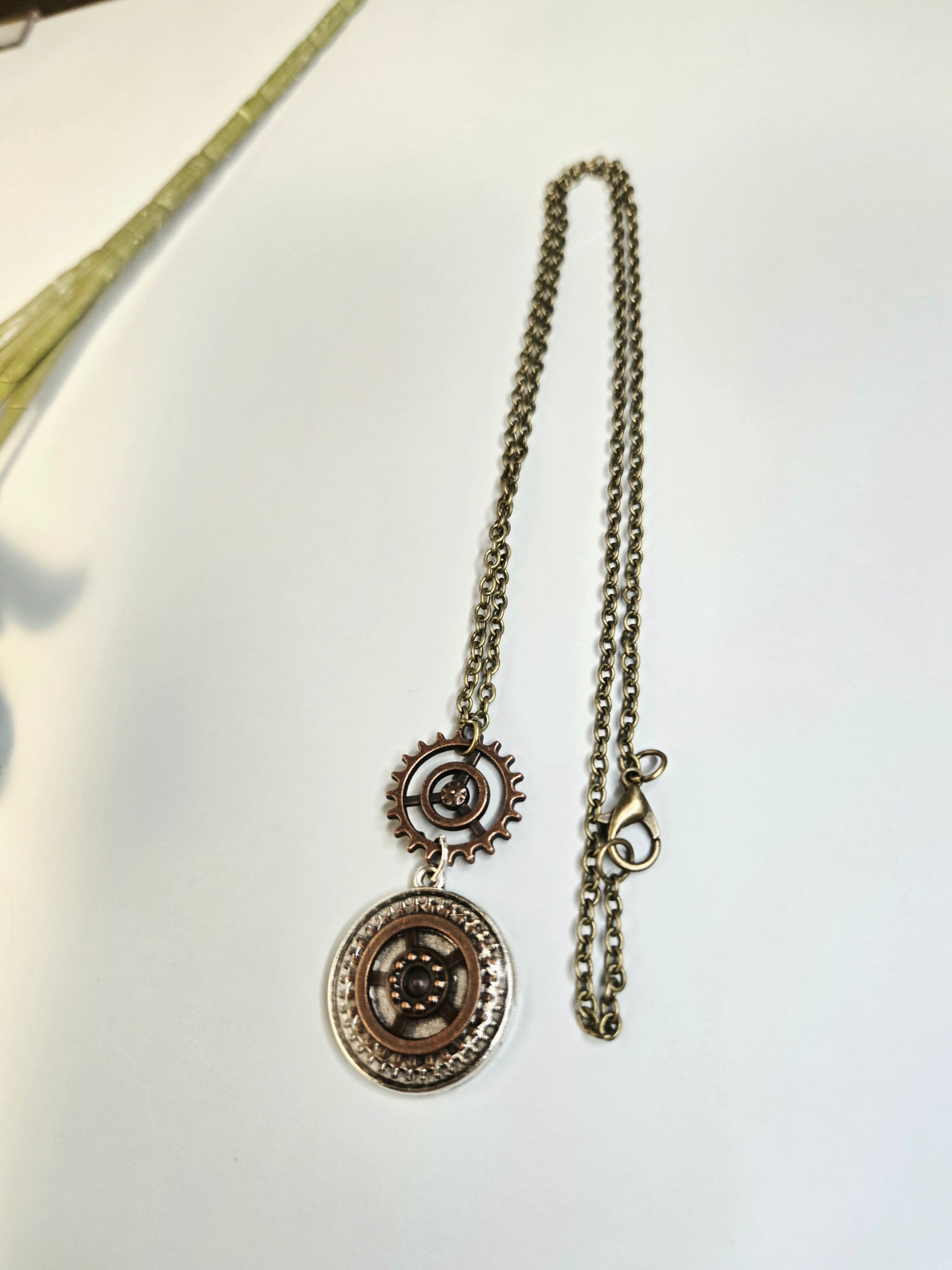 Add a bold touch of vintage industrial style to your look with this steampunk gear pendant necklace. Featuring layered gears and clockwork-inspired details in bronze and silver tones, this necklace is perfect for anyone who loves mechanical, retro, or alternative styles!