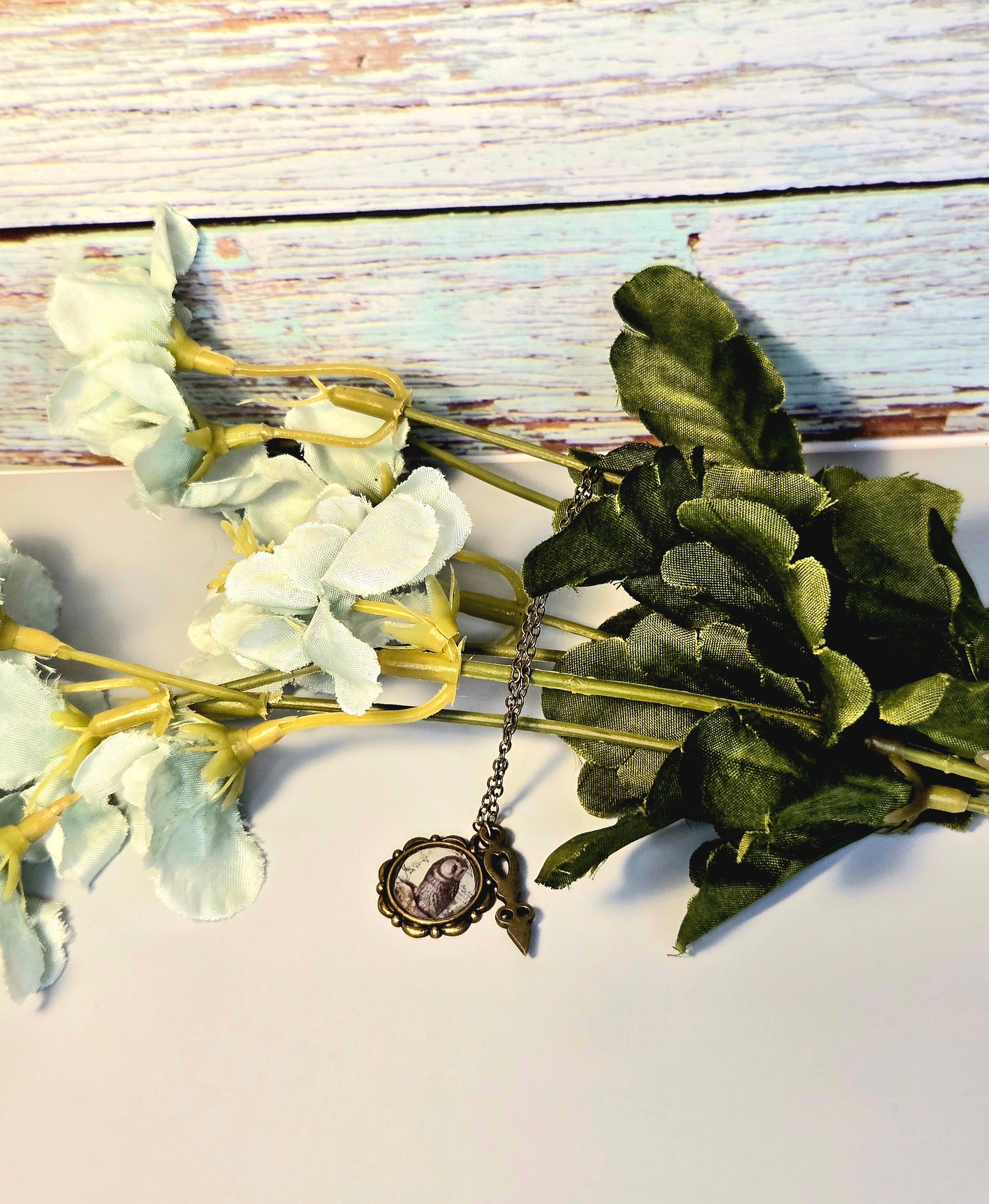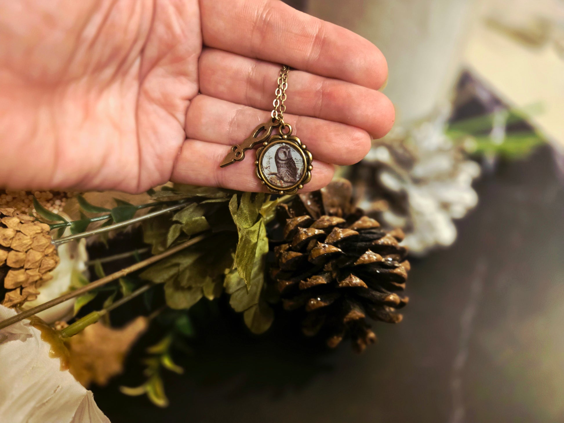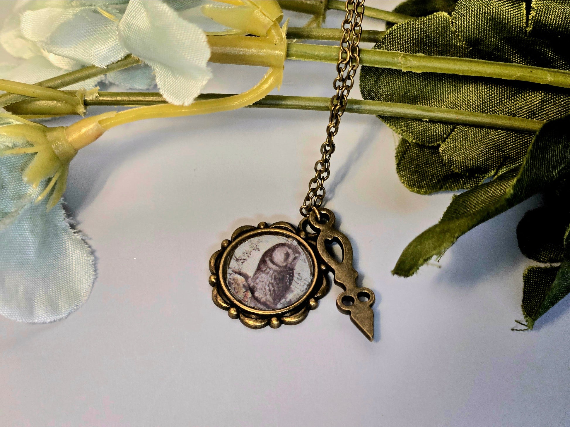 Mystical and bold, this Steampunk Owl Pendant Necklace is a statement piece with a vintage twist. The detailed owl illustration is framed in an ornate bronze bezel and paired with a decorative clock hand charm, giving it a mysterious, time-travel feel.