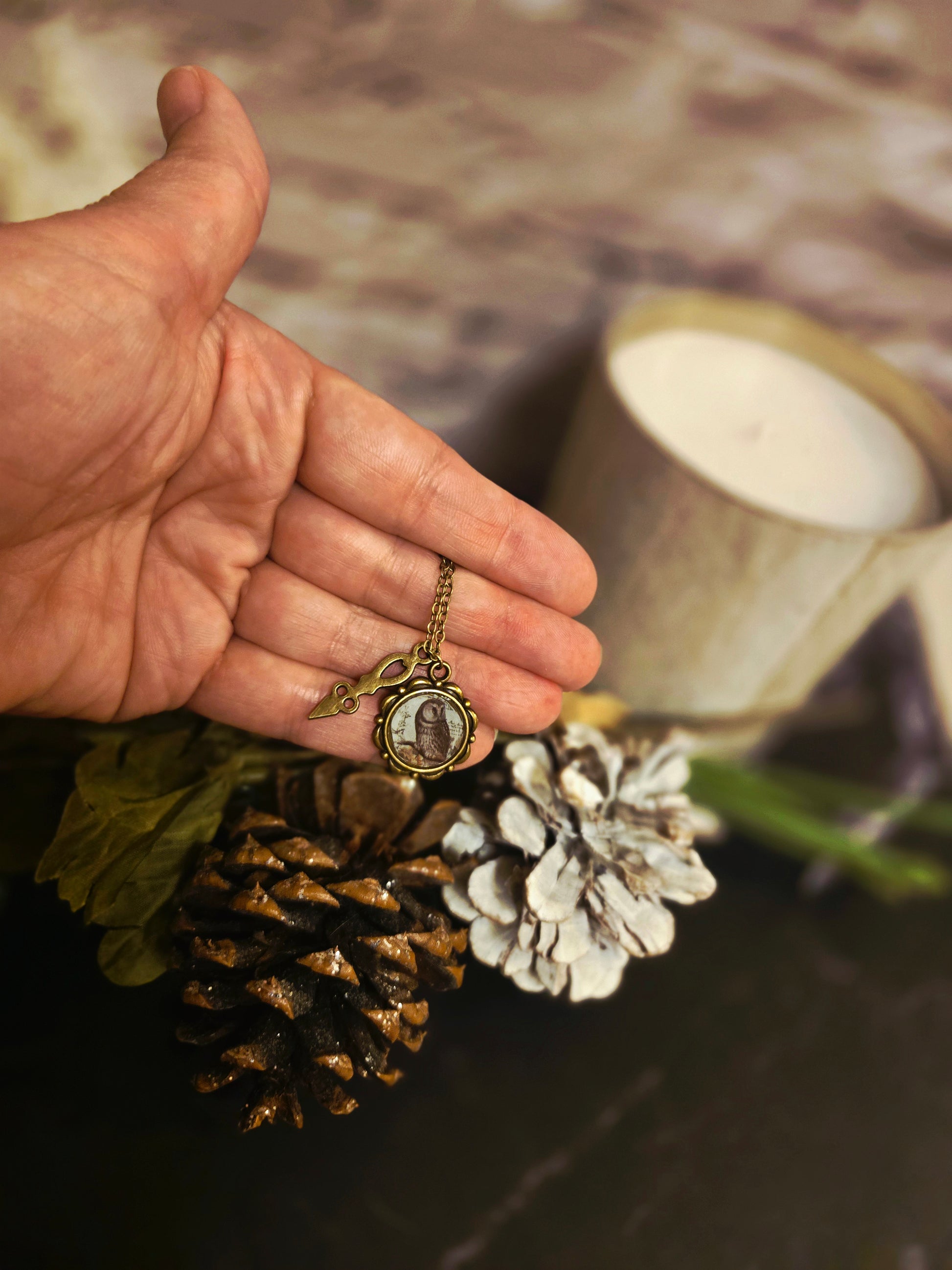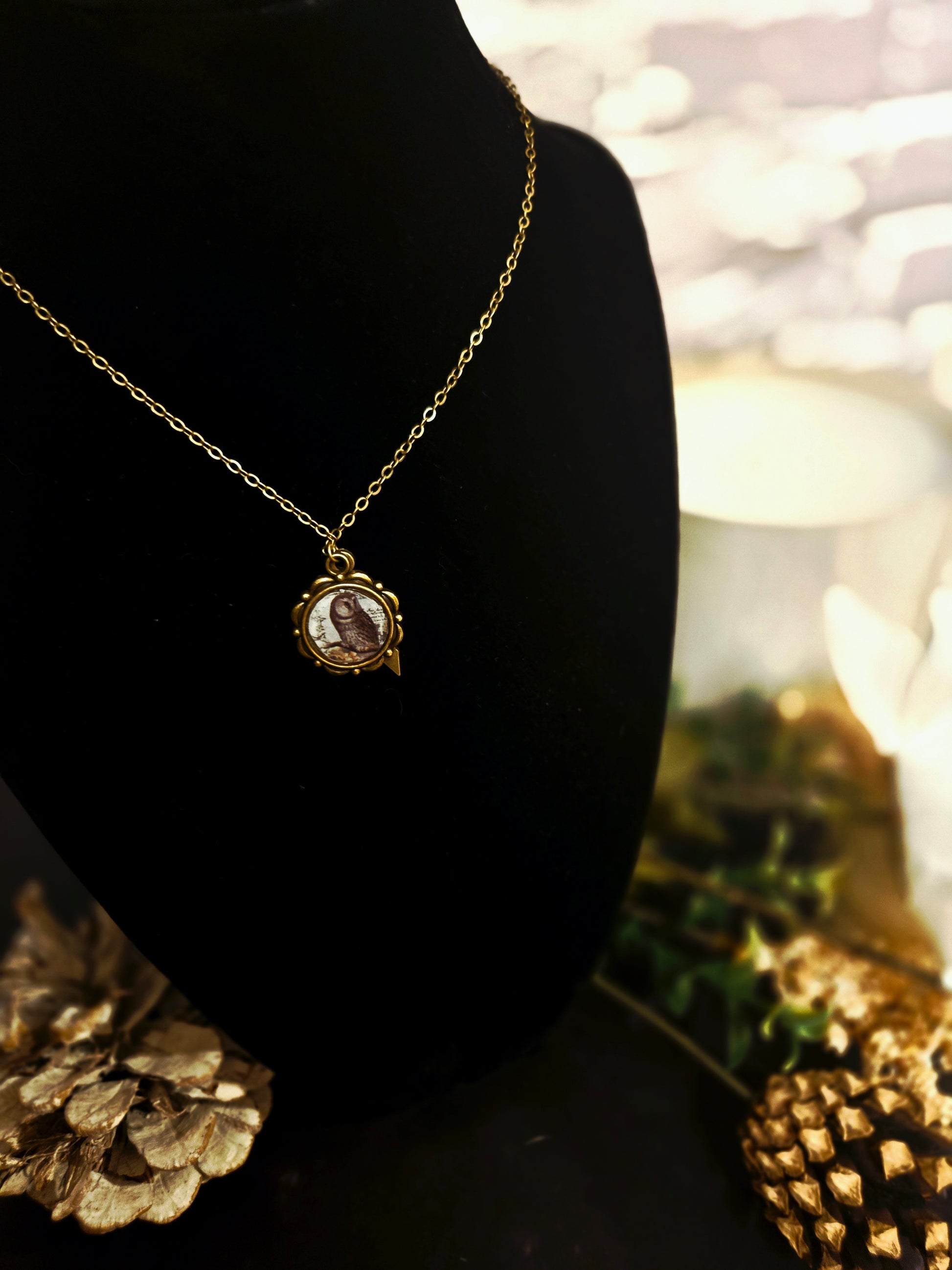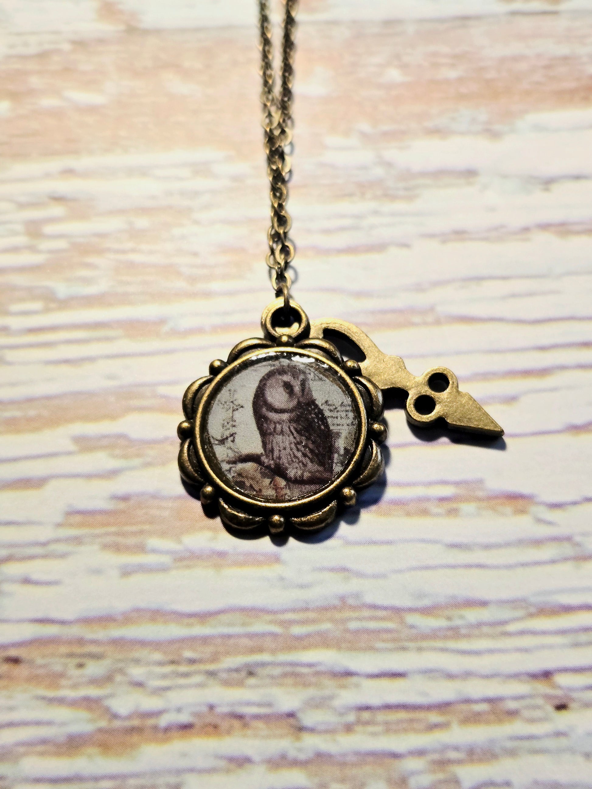Mystical and bold, this Steampunk Owl Pendant Necklace is a statement piece with a vintage twist. The detailed owl illustration is framed in an ornate bronze bezel and paired with a decorative clock hand charm, giving it a mysterious, time-travel feel.