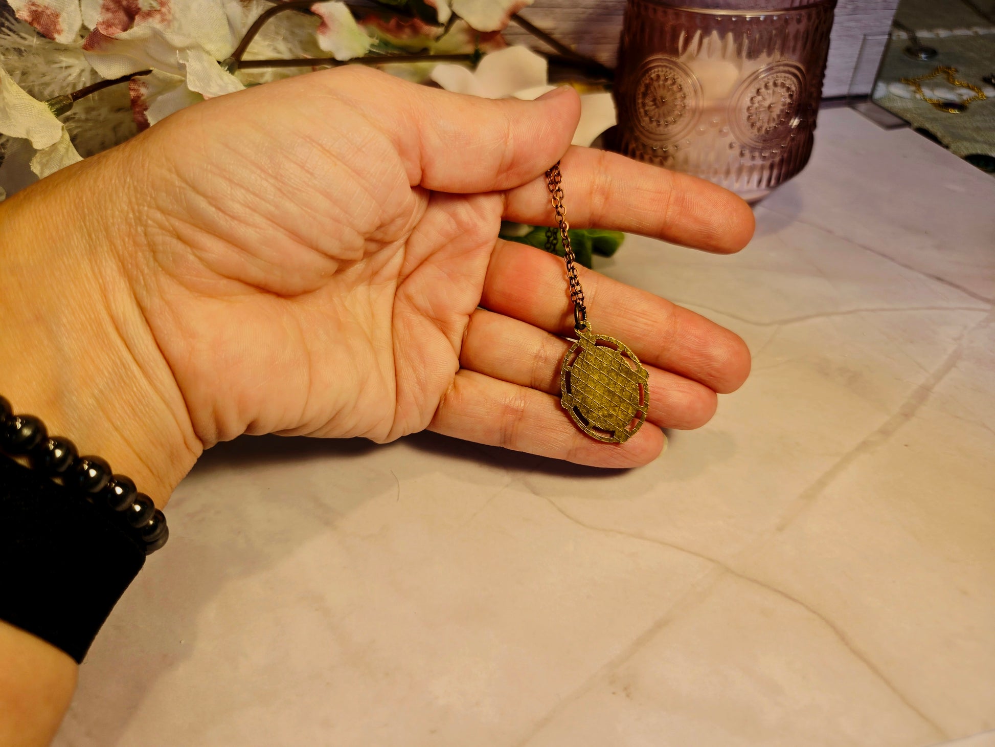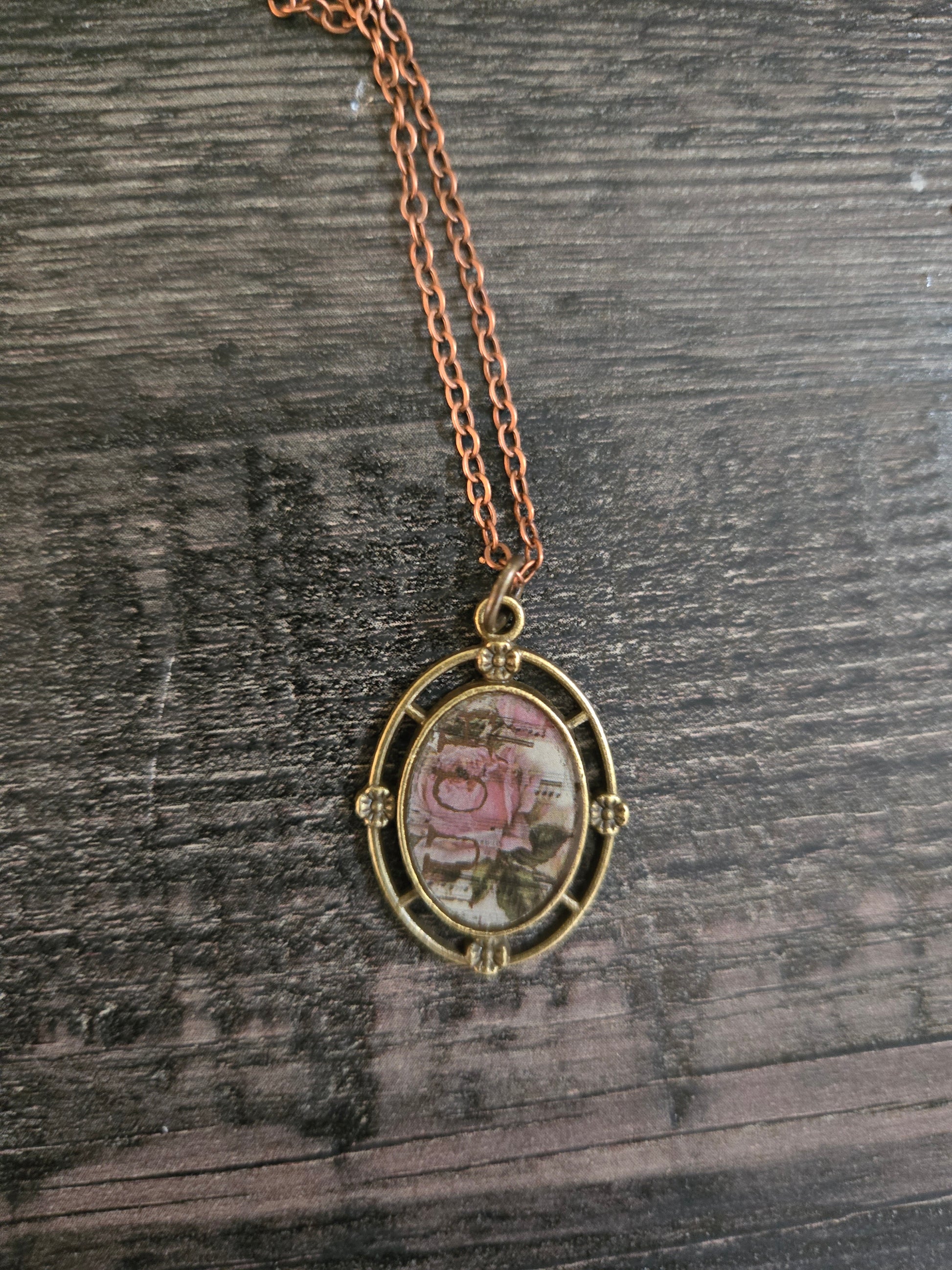 Suspended from a warm copper chain, this necklace adds a subtle touch of vintage charm to any look, whether you’re strolling through gardens or getting lost in your favorite novel.